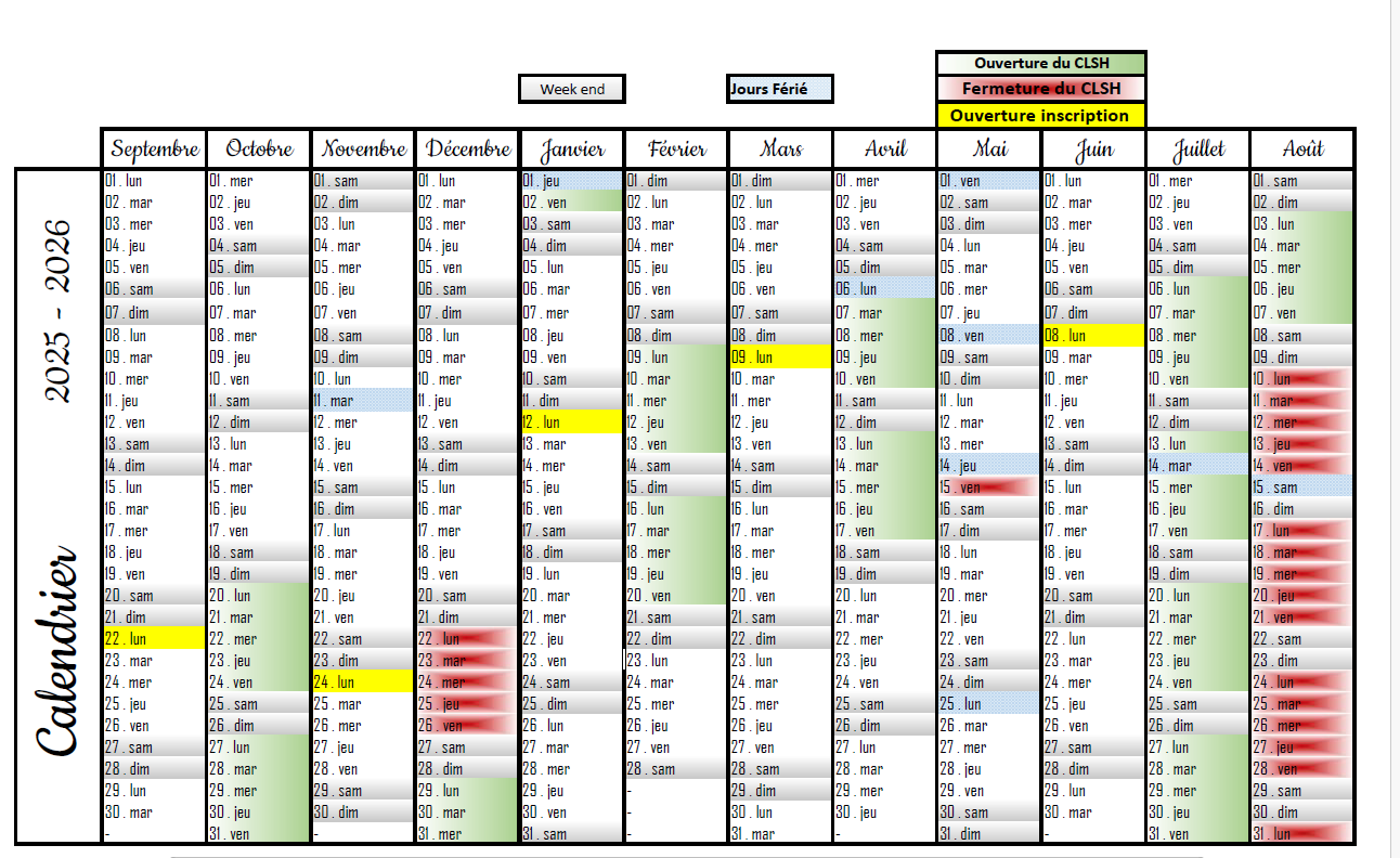 Calendrier CLSH